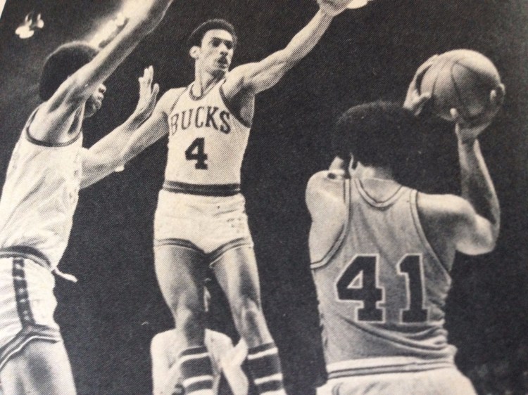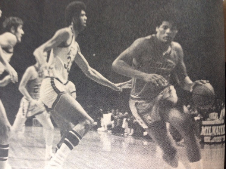 Consequently, when we play the Bucks, we have to make certain adjustments. A smart team can adapt to the unique situation Lew presents. That’s basically our problem. We’re not always that smart team. Probably our greatest drawback the past season was our inability to recondition our game, depending on whom we were playing. Like Boston; there’s a team we should run against. But we slow down. With guys like Kevin Loughery and Earl Monroe who can effectively drive the middle, we hold a distinct edge. But you can’t do that against Lew. He rejects your shot almost before you can shoot it.