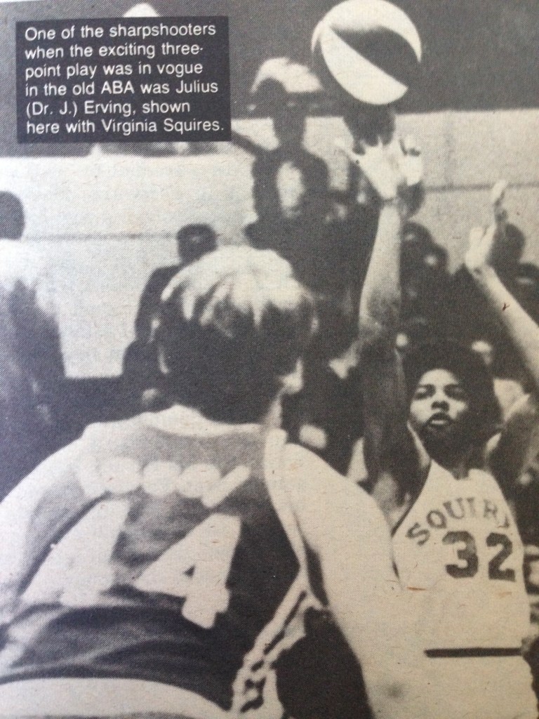 This article from Sports Quarterly’s 1979-80 Basketball Special issue describes the NBA’s grudging decision to outfit itself in an ABA idea. Written by veteran New York Daily News reporter Joe O’Day, this brief article is a good place to start in learning more about the NBA’s decision to try out the three-point shot and, as history would show, remake the league in a manner that would bring a smile to the face of the late-Abe Saperstein.]