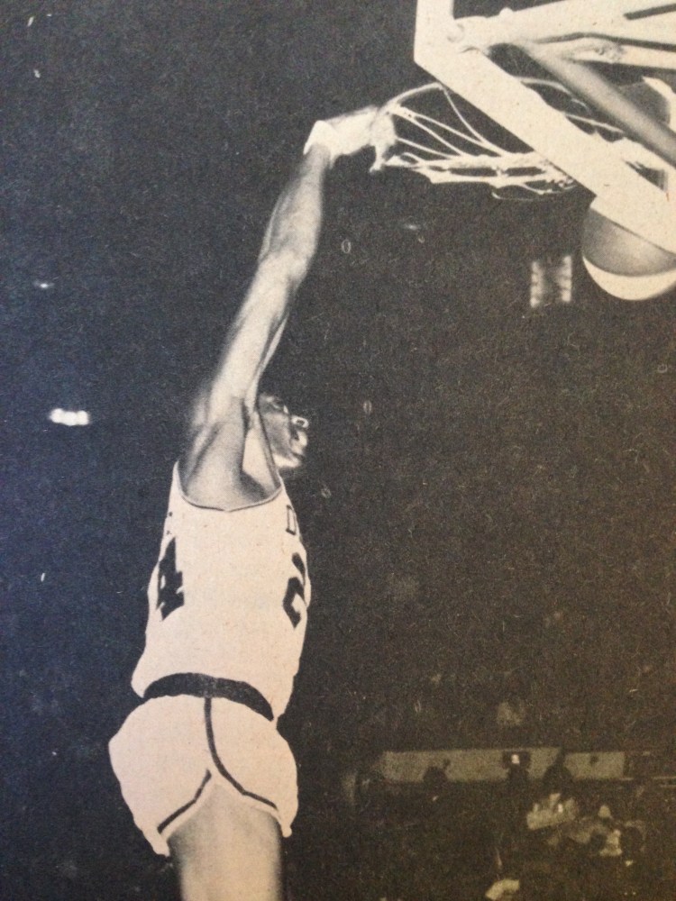 “I have to play basketball almost every day to stay in the kind of shape I want to be in. Last year, when I was thinking about pro ball, I thought I would need extra weight so I built up to about 233 pounds. But when the league play started, I lost most of it and went down to about 210. I felt better at 233 but couldn’t hold it.“