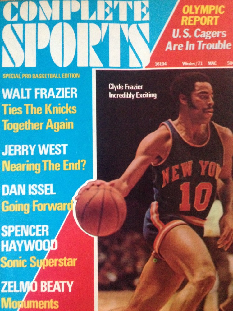 [The blog is back from the days-long grip of a technical difficulty. Let’s get things rolling again with an article on Walt Frazier that’s been in the queue for a while. It’s from the prolific New York Times reporter Sam Goldpaper writing about “Clyde” at the start of the 1971-72 season. As you’ll read, Goldaper thinks most highly of Frazier and that makes the article mildly saccharine in places. But Goldaper knows his stuff. As a Times’ reporter, Goldaper also had easy access to all the players, and that makes whatever he wrote worth a read. This read appeared in Complete Sports’ Winter 1971 Pro Basketball Special Edition. Frazier is on the cover.]