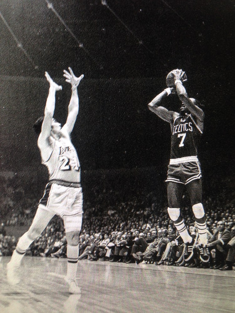 The Celtics traded for him, and a few things happened when he came to Boston. He injured a leg in training camp. This held up his opportunity. He reported wearing one of his “way-out mod outfits . . . bell bottoms, wild shirts, a Sherlock Holmes cap, buckled shoes, those wonderful sideburns, and a more than slightly decorative beard. He was stomping on coach Russell’s domain.