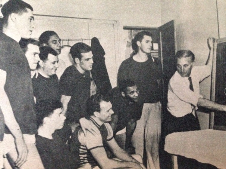 It was after an evening practice session at the training camp that Coach Bee sat down to study what he had in camp. He talked about Zaslofsky and Barnhorst and Felix and Miller and all the other boys. At the time, there were about 30 players on the training roster, and in a rapid-fire voice, he ran down the list, not missing a man, having something to say about each. Some weren’t going to make it because they were woefully out of shape.