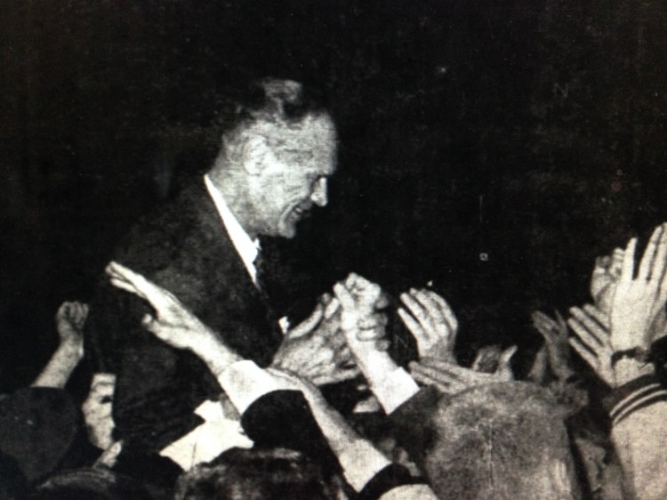 Lapchick, surrounded by a mob of reporters and well-wishers, refused to let the atmosphere become sentimental because of his retirement. “Your nerves have got to suffer if you want to do it good,” Lapchick once said, and Lapchick had “done good,” suffering with 335 victories and 139 losses in 20 seasons at St. John’s.