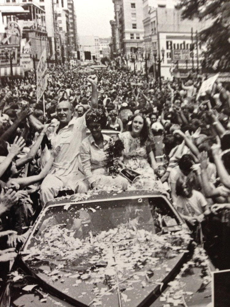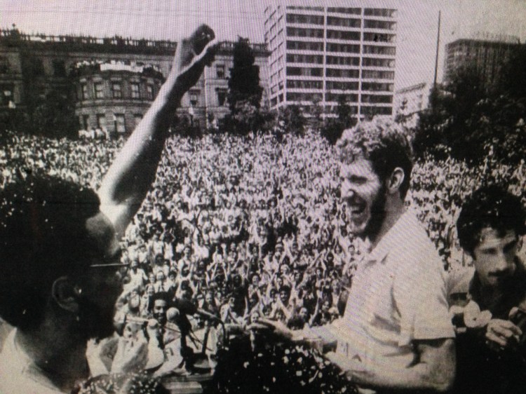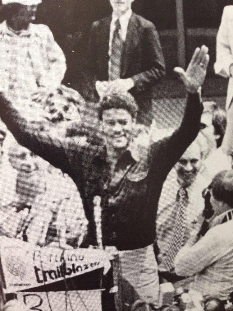 This was the day after the Trail Blazers won their first NBA championship, Camelot on the day of the crowning of King Arthur. The images are still memorable, even if a lot of people who’d made it all happen say they don’t think about it much anymore: 50,000 people jammed into downtown for a victory parade; Bill Walton arriving on his 10-speed bicycle; Walton pouring a can of beer over the head of Mayor Neil Goldschmidt; Walton getting his bicycle stolen; and to prove this really was a different time and place, Walton getting his bicycle returned.