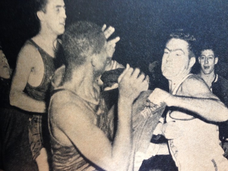 The fight brought back memories of Auerbach’s Celtic battlers of the past, of Russell breaking Jim Krebs’ jaw, of Loscutoff decking Dick Schnittker with one punch, and of Brannum flattening Dolph Schayes.