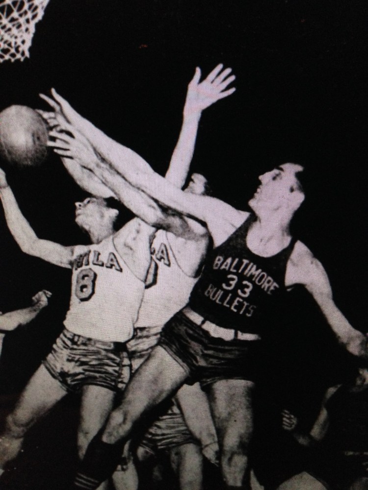 Goldaper, though a veteran reporter, can lose narrative focus in his profiles, and he does so here. But the somewhat-meandering article is still worth the read. As a bonus, I’ve also added a newspaper account of Philadelphia’s Joe Fulks and his record-breaking 63-point game.]