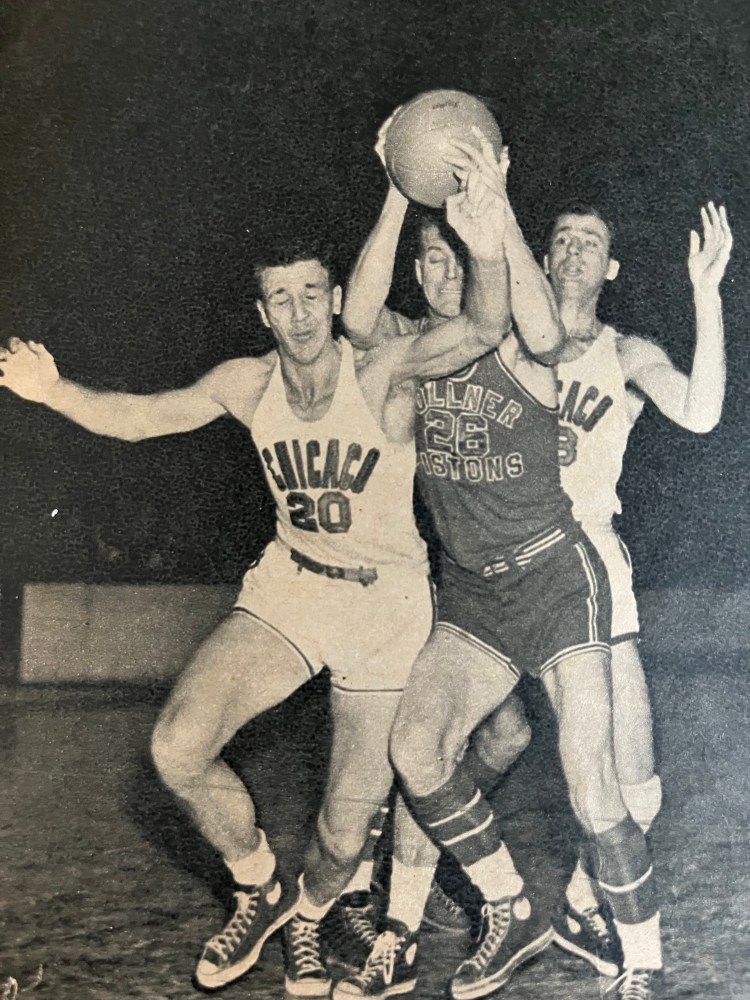 What happened then was that Paul Birch, Fort Wayne coach at the time, challenged the height of the baskets. The playoff game was held up while Podoloff was tracked down and consulted. The president gave permission to have the hoops measured. They were found to be lower than the regulation 10 feet from the floor. Since that time, Bennett claims, Harrison’s main goal in every game on the Fort Wayne court has been to deliberately foul at the onset and to continue until the final whistle to disgust the customers.