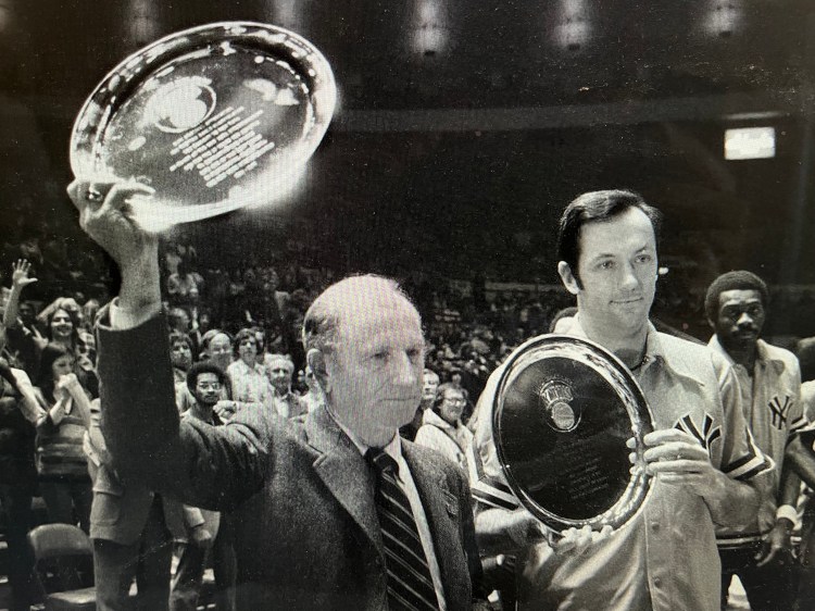 [As the NBA’s 1976-77 regular-season wound to an end, the New York Knicks wound up with no postseason bid and big changes to come. Red Holzman, who had famously piloted the Knicks to two world championships, was retiring. So was forward Bill Bradley, one of the last fixtures from those two NBA teams. Newsday’s Pete Alfano was there for the last roadtrip. Here’s his vivid account of the final goodbyes, published on April 11, 1977. Enjoy!]