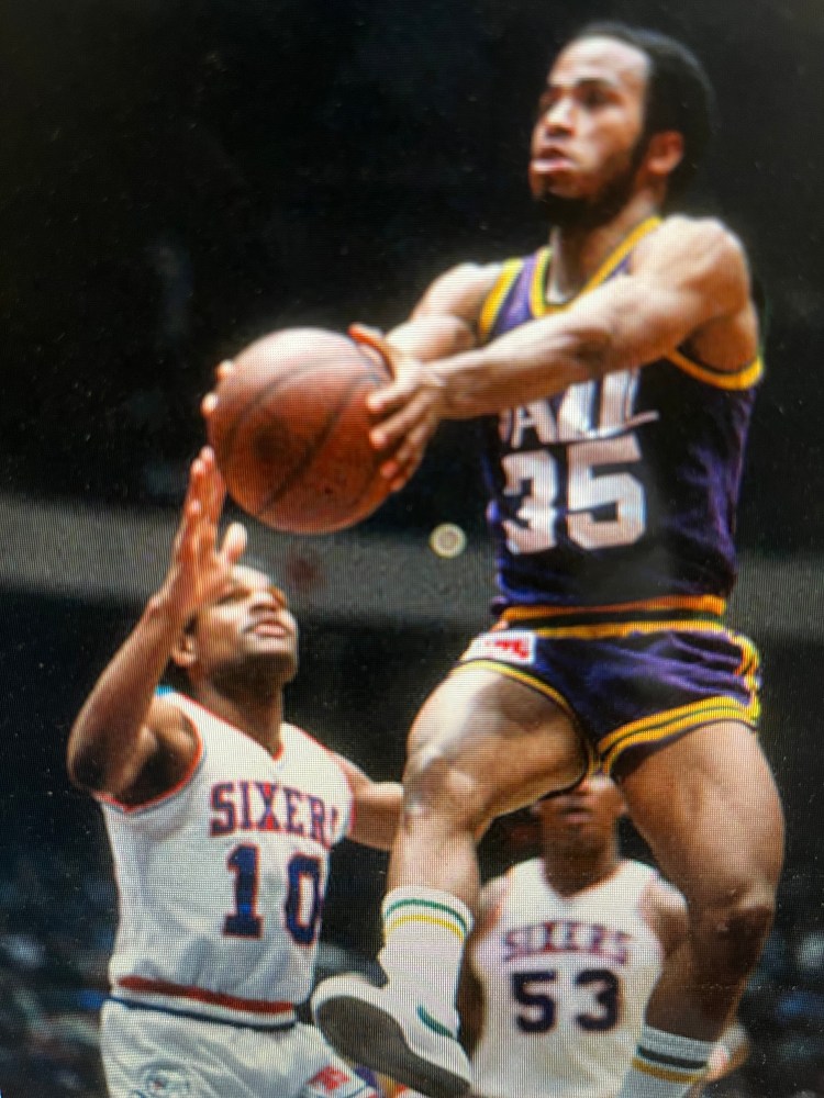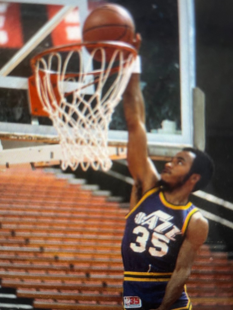 Sure, it wasn’t against UCLA during University of Louisville’s 1980 national championship victory. Nor was it Kareem Abdul-Jabbar or Moses Malone during his 10-year career with the Utah Jazz. But it did announce his arrival.