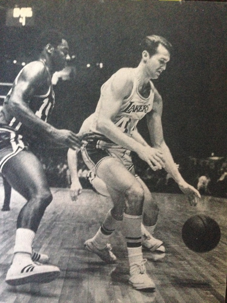 West is a country boy from West Virginia, nicknamed “Zeke From Cabin Creek,” who still speaks with a slight southern accent. As a boy, he was tall and skinny and short on clothes and cars and almost painfully shy. He flopped at other sports, but set state high school records in basketball and led his team to the state championship. That was his last team title. He led West Virginia University to its greatest college triumphs, but fell one point short in an NCAA championship game. Snapped up quick in pro ball, his Lakers three times have fallen just two points short in NBA title games.