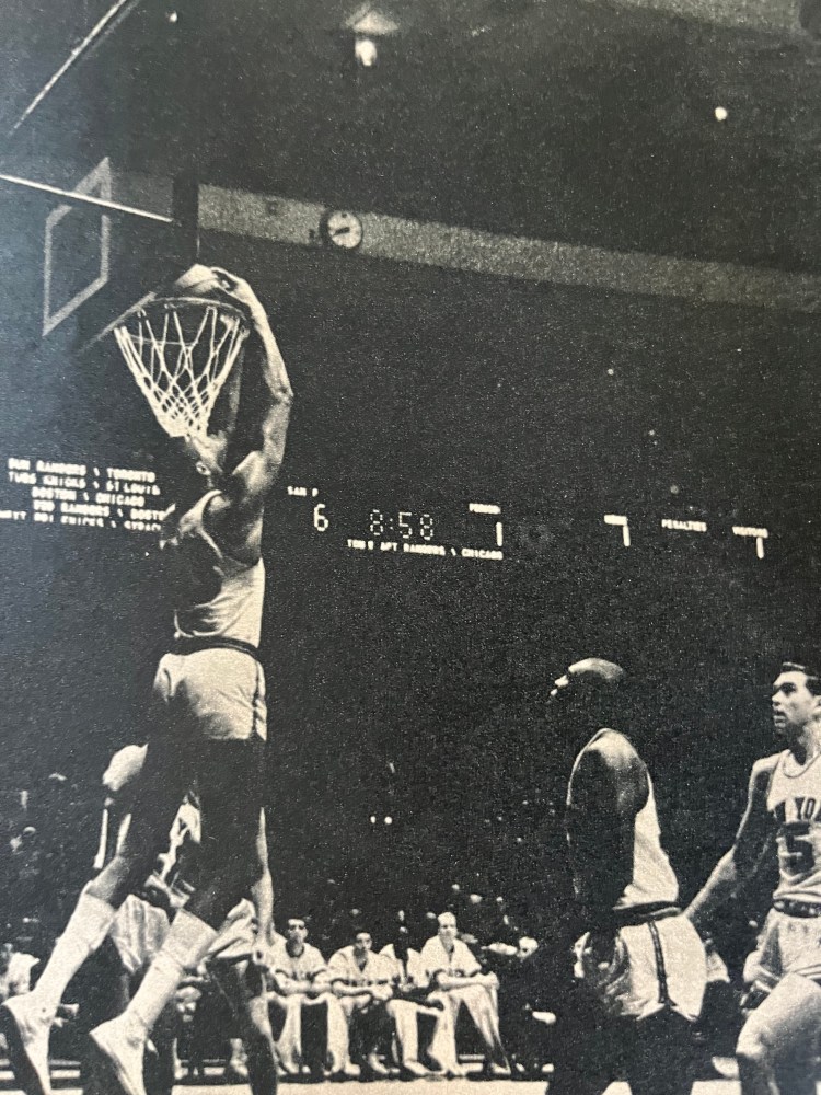 For Rodgers, the step from college to professional basketball was natural, and no one was surprised when he signed to play with his hometown Philadelphia Warriors. As a rookie in 1958-59, his first and last without Wilt Chamberlain as a teammate, Guy averaged 10.7 points a game and picked up 261 assists as the Warriors finished last in the East. By the next season, with Chamberlain playing professionally, Rodgers’ life and the NBA were both entirely different. “Wow,” said Rodgers the first time he saw Wilt, “a Watusi warrior.” Today, Chamberlain, and Rodgers are close friends, both well aware of the others special abilities. “Wilt’s the best,” says Rodgers. “He’s revolutionized the game.”