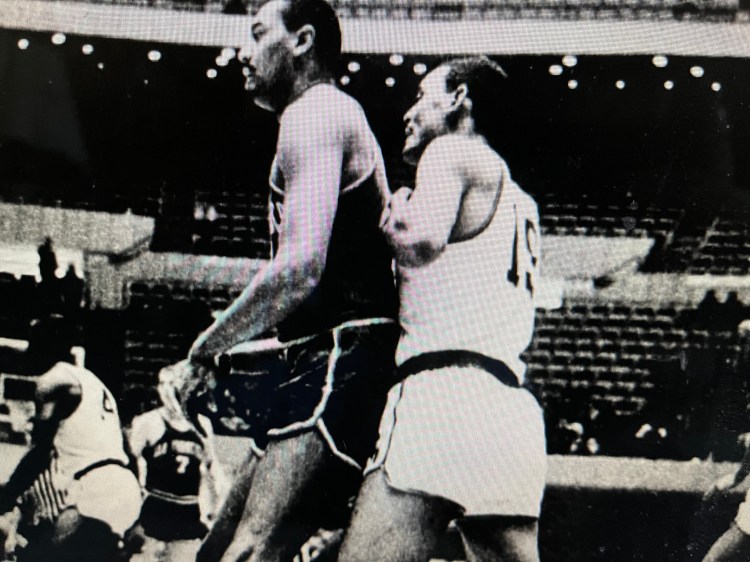 The Lakers came to town, and they left 30 points behind them in Los Angeles—in a splint on the hand of Jerry West, all-pro guard and the team’s high scorer. The Laker lineup is dotted with the names of guys who never got on the score sheet unless the team is 20 points ahead or 20 points behind and the clock showing two minutes to play.