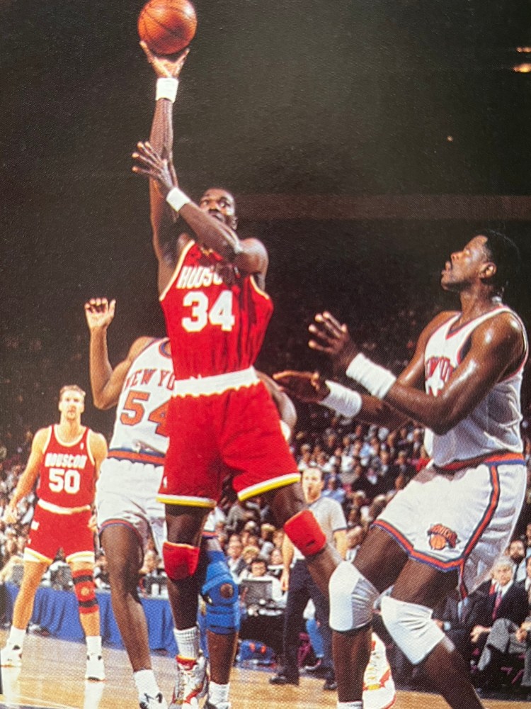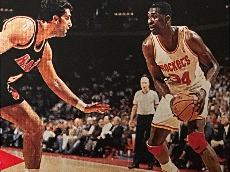 [No need for a lengthy intro here. Hakeem was The Dream. In this article, published in the April 1994 issue of Rip City Magazine, the Houston Chronicle’s Eddie Sefko explores how The Dream became the NBA’s heir apparent to Air Jordan as “the greatest [active] player on the planet.” That would be following the latter’s brief attempt at a second career in pro baseball. Sefko would leave Houston not long after to cover the Mavericks for the Dallas Morning News and now, 20-plus years post-Houston, Mavs.com. In all, Sefko has been living his NBA dream for nearly 40 years.]