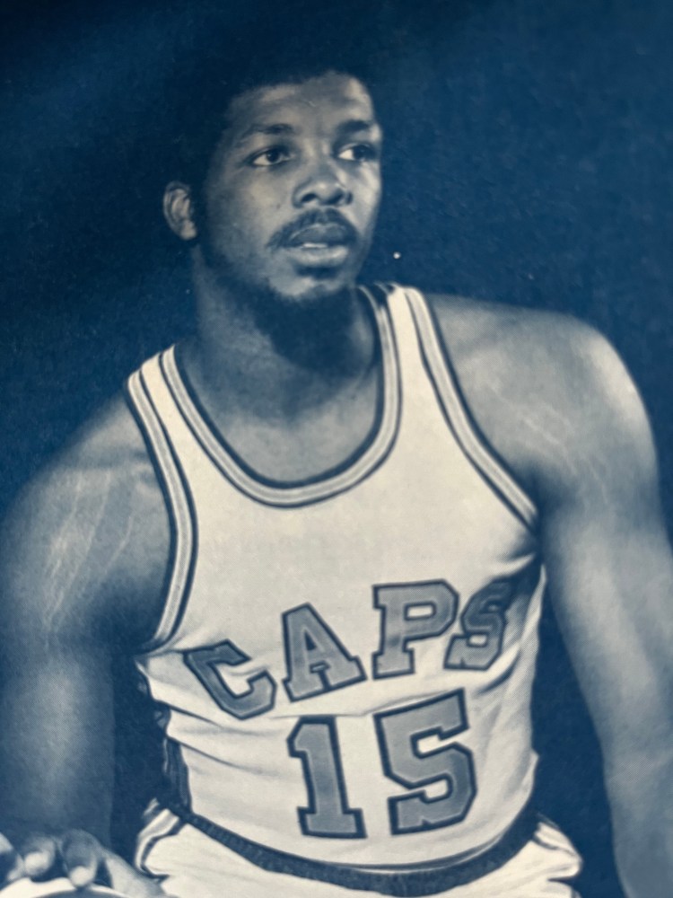 [The Oakland Oaks landed the next season in Washington, D.C. and morphed into the Caps. Armstrong (Jabali) tagged along with the team, but a rash of injuries interrupted his sophomore season. Nevertheless, when healthy, he continued to impress, routinely outrebounding his taller opponents. Take this brief write-up from November 7, 1969. It comes from Bob Whitney, a reporter with the Washington Daily News.]
