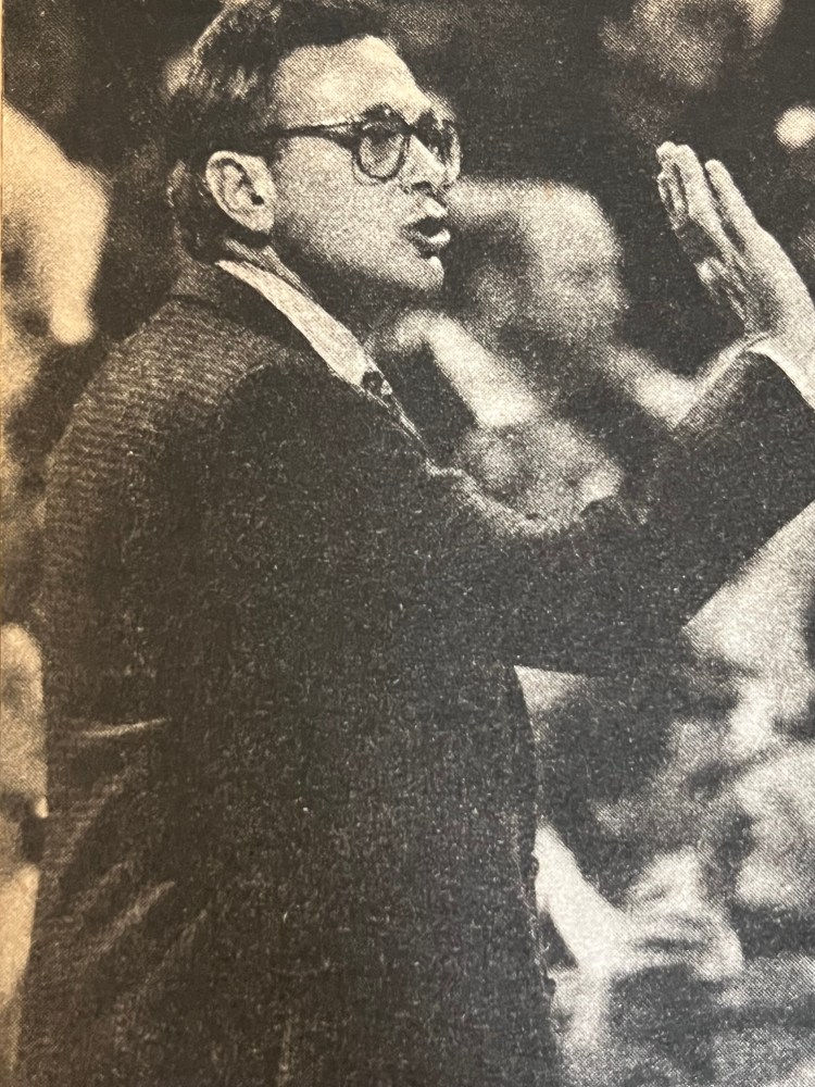 [No intro needed for the great David Robinson, except to remind everyone that his pro career got off to a delayed start in San Antonio. Whether you remember the delay or not, John Lopez of the San Antonio Light refreshes our memories in this December 1989 article from Basketball Digest. It’s a quick read about the Spurs, under Larry Brown, and the giant expectations that greeted the 7-1 Robinson once he finally hit town.]