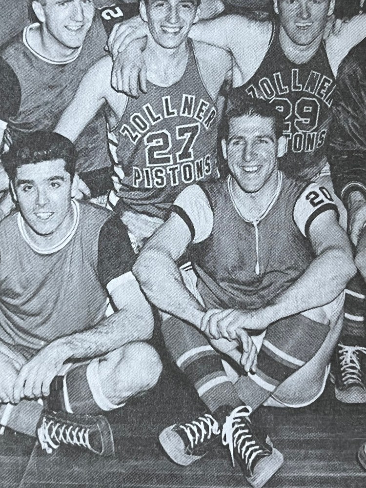 The All-Stars took a four-point lead on two more foul shots by Mikan and an under-the-basket bucket by Klier. The Zollners cut this to one point with Reiser hitting a basket, and Pelkington adding a charity throw. Mikan put one in near the circle, and McDermott swished another long one from the side to make it, 25-24, All-Stars. In the final minute of play of the period, Pelkington tipped one in, and Tony Jaros connected near the circle. The score stood at 27-26 in favor of the All-Stars at intermission.
