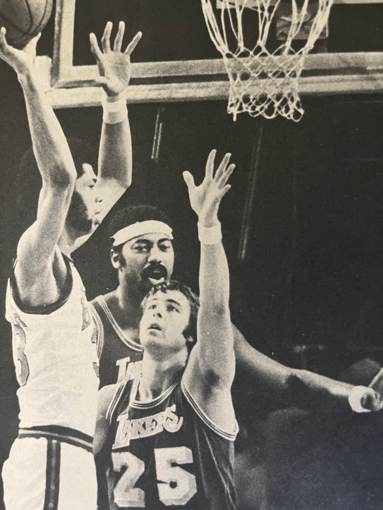 With the Lakers protecting an 85-83 lead with 10 minutes to play, Goodrich started the championship run with a drive-in shot, then Wilt hit, Happy Hairston scored a layup, and Jim McMillan got a pair of free throws. The Knicks’ outside shooting deserted them, and they were scoreless in seven attempts while the Lakers pulled away to the title.