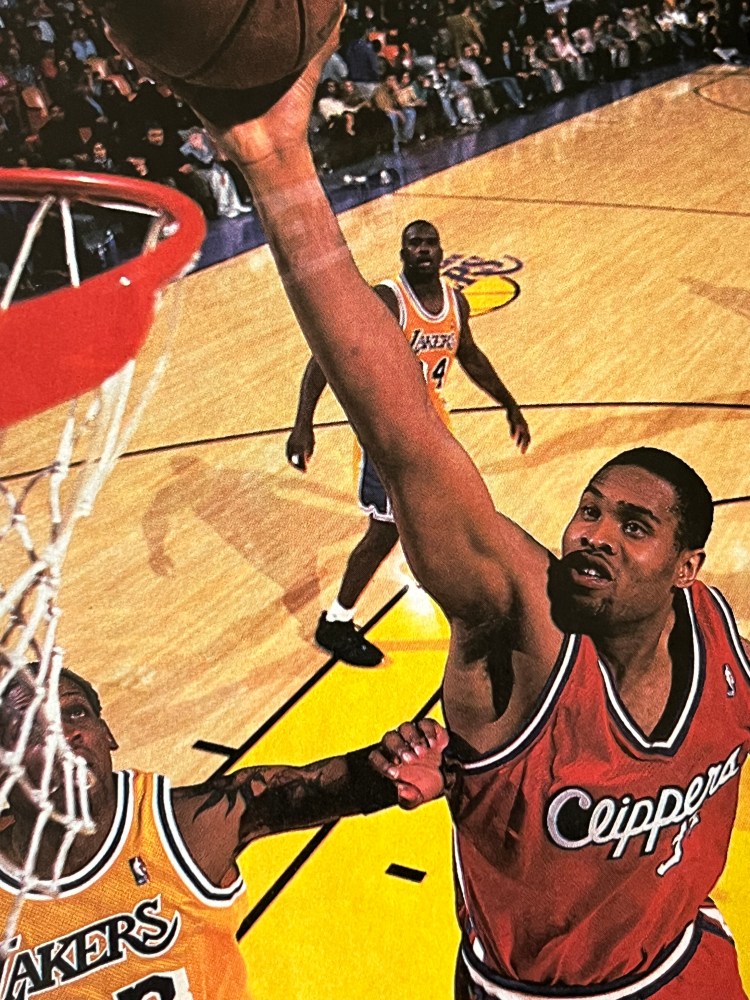 For the freeways and surface streets, he has a learner’s permit. For the low post, he has at least two more guaranteed seasons before a comprehensive verdict can be rendered. But the picky, picky national hoop jury wants more evidence to consider. Will he develop into a consistent “15 and 10” guy or will he join the pantheon of didn’t-live-up-to-expectations Clipper draft picks—the second coming of Bo Kimble, Randy Woods, Benoit Benjamin?