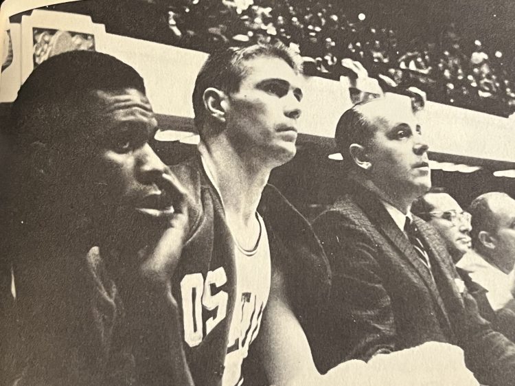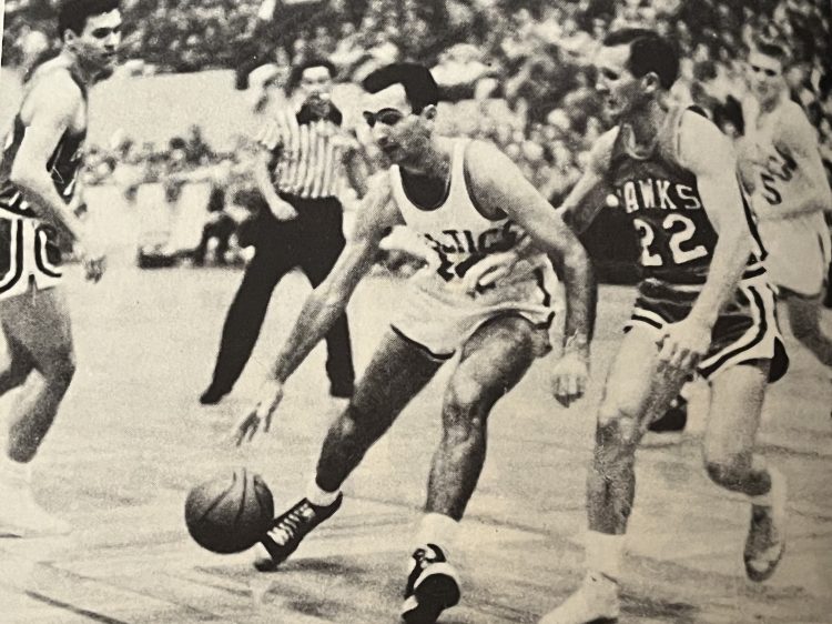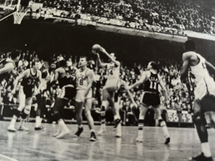 He didn’t play again until the first half was nearly over. The first thing Cousy did when he got back into the game was throw a long, beautiful pass three-quarters the length of the floor into the hands of Heinsohn, who scored a layup. A minute later, Cousy scored himself after taking a pass from rookie John Havlicek. Then Bob threw another long pass to Heinsohn, who scored again. At the half, Boston led, 62-47.