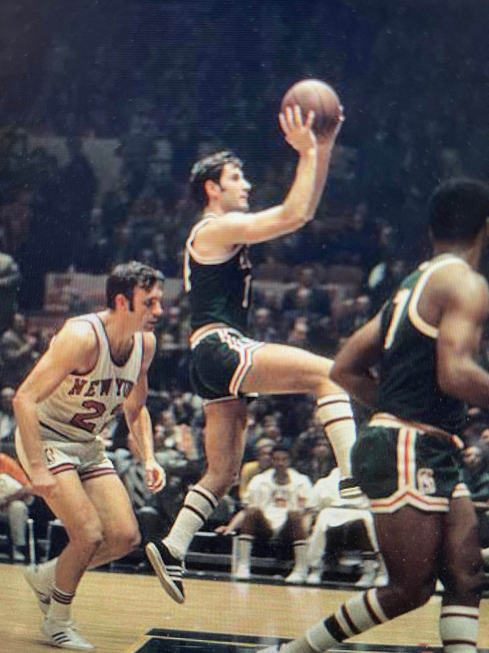 Despite his size, McMillian can break in at forward because, with the menace of Wilt Chamberlain at center, the Lakers really don’t need strong rebounding cornermen.